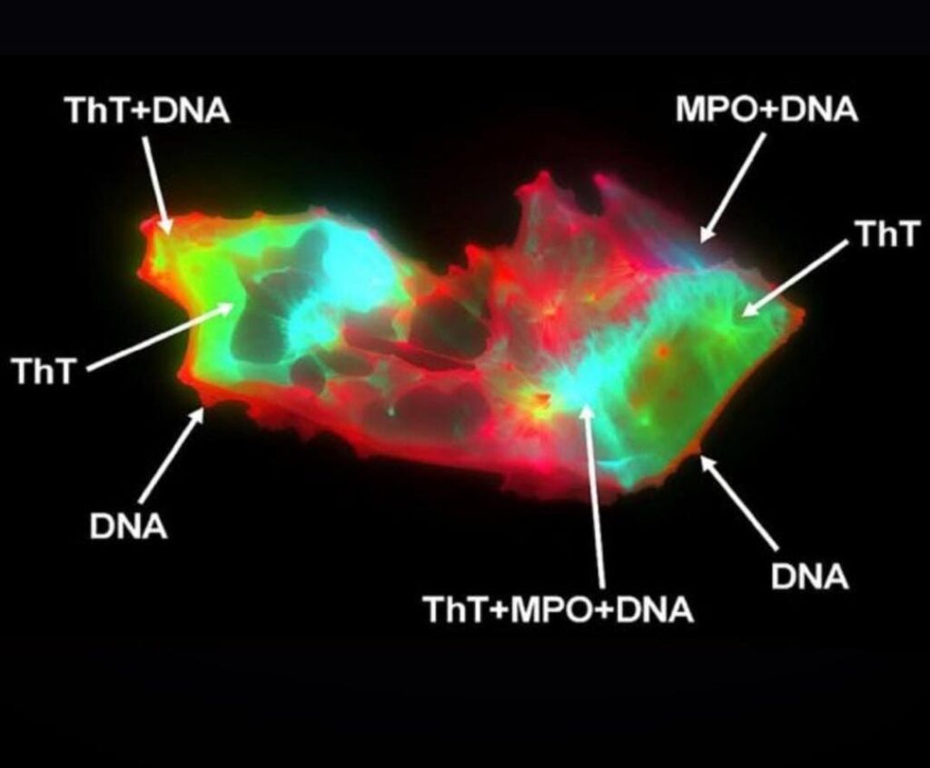 The clots, embedded with neutrophil extracellular traps (NETs), are like sticky webs released by immune cells. For the first time, researchers have seen these microclots and NETS physically linked, suggesting a novel biological marker that may help explain persistent symptoms.